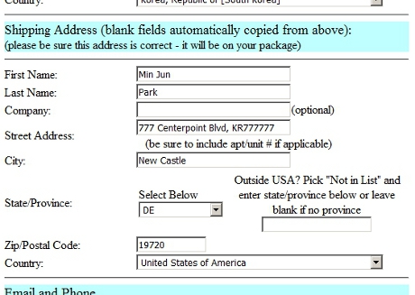 Payment Shipping Address: